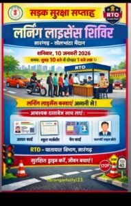 लर्निंग लाइसेंस शिविर सारंगढ़ खेलभाठा मैदान 10-01-2026